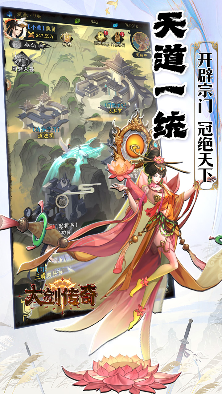 玩家可以自由探索庞大的修仙世界,可拜师进入门派修炼各大门派秘笈,探寻游历等功能提升修为境界,渡劫飞升,得道成仙,书写传奇。