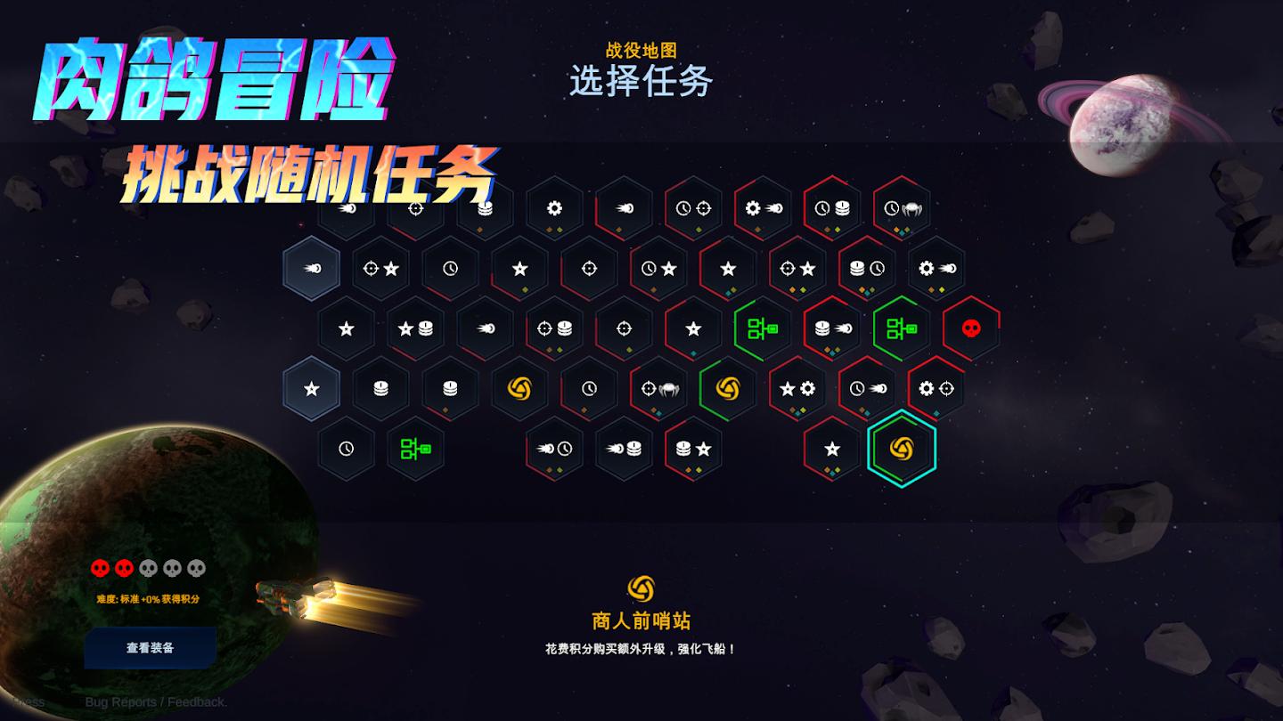 肉鸽星际生存,消灭太空敌人——驾驶战舰穿梭太空,升级解锁武器装备和属性加成,探索属于你的流派构筑,迎战源源不断的太空敌机。作为茫茫星际中的最后一艘飞船,你是否能够突破重围?