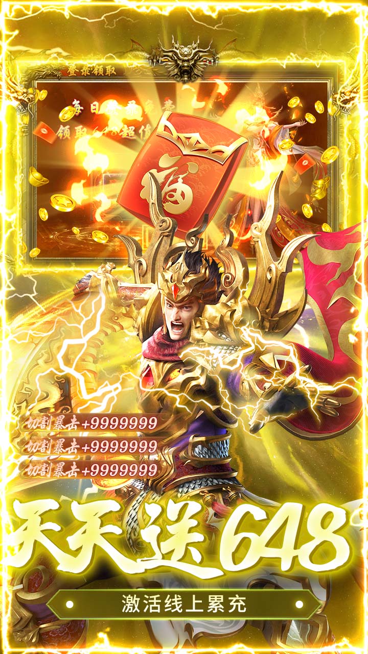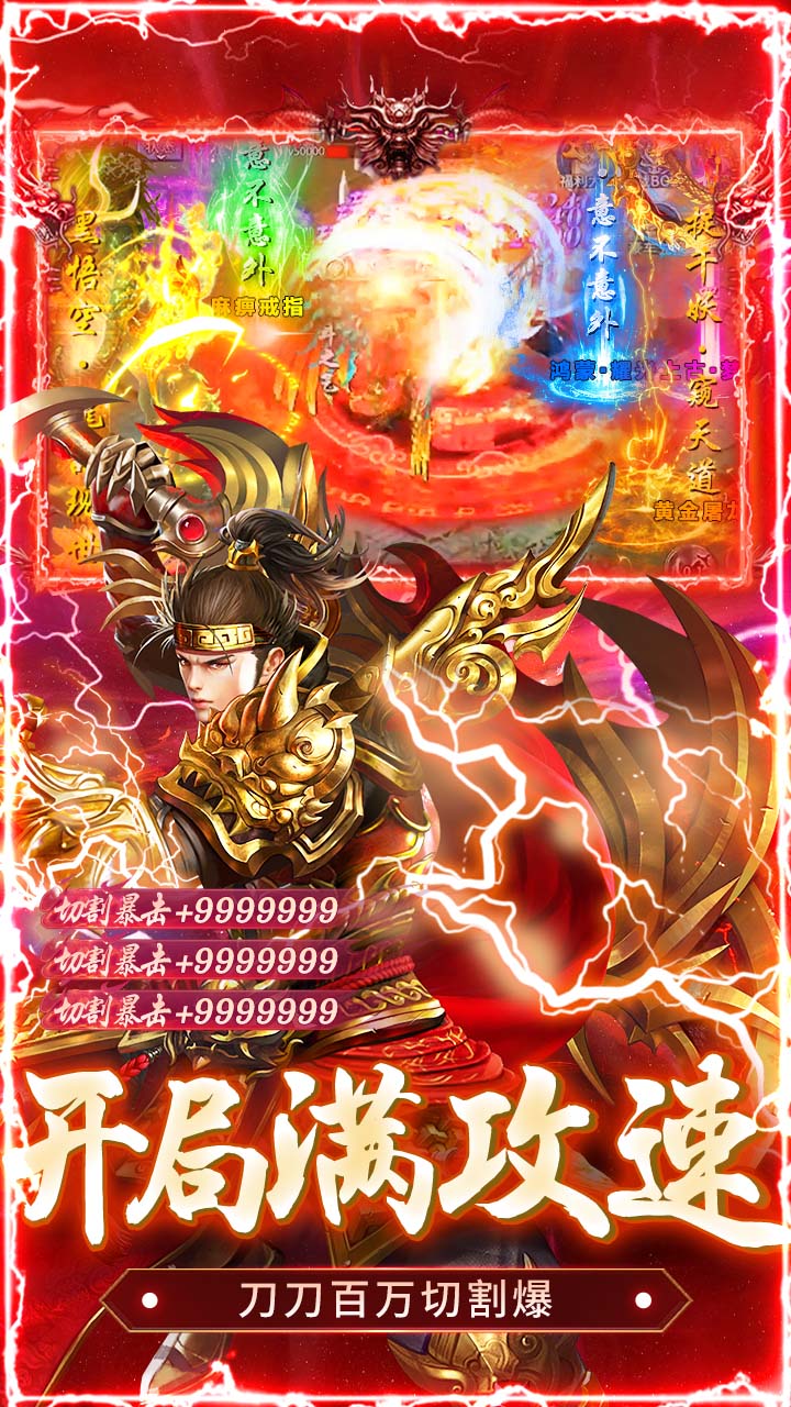 提示 : 1.上线福利:开局送百万等级,99万攻击、999万血量,999万切割