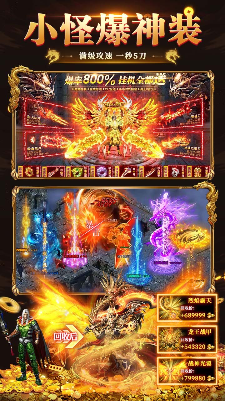 6.超高爆率:所有道具全靠打,全部地图无VIP限制,小怪也能爆神装
