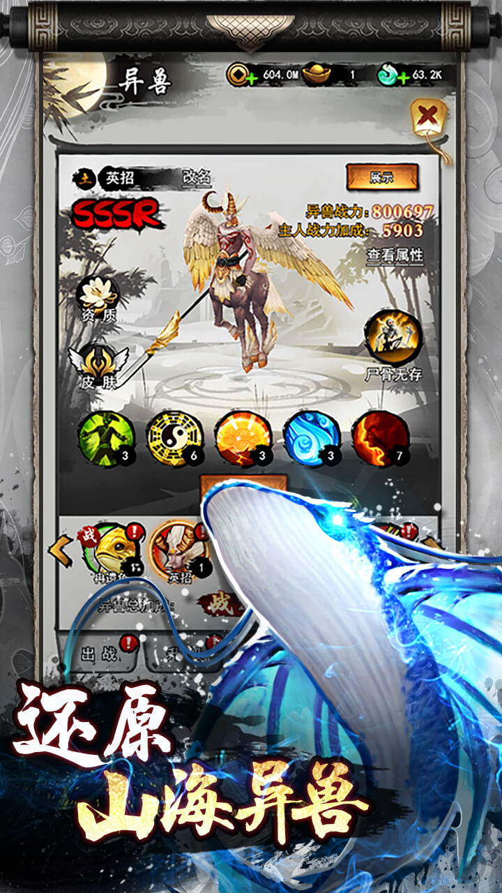 一款以收集养成上古异兽,渡劫修仙百变外观,超爽3D打击感的Arpg仙侠类H5游戏,突破了传统仙侠的宠物模式,你可以在御剑飞行遨游山海的同时,降服上百只上古异兽统统纳为己用。任意搭配最强的出战异兽组合,配合神级伙伴的助战技能,天上地下,唯你独尊!