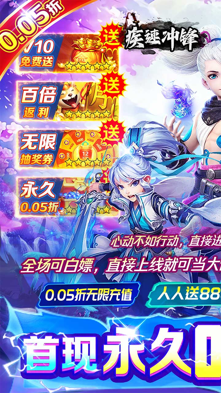 一款以九州世界为题材的放置挂机游戏,游戏内所有充值档位通通0.05折,轻轻松松霸服当大佬。全新版本开局就送V10+88888元宝,签到送元宝,激活月卡还能双倍领取,登陆送无限装备抽奖,0元礼包海量送,百倍返利爽翻天!游戏中还有多种玩法,经典的副本玩法,挑战成功道具领到手软!挑战首领,各路仙侠万人同台竞技!加入帮派与至交好友一览仙侠,战斗路上不再孤单!