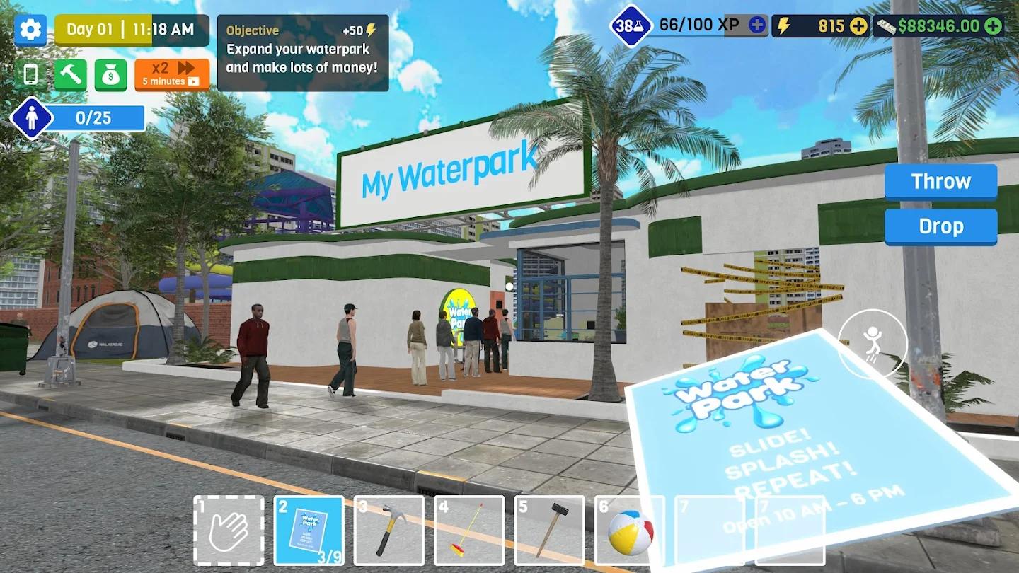 在水上乐园模拟器中建造并运行您自己的水上乐园!