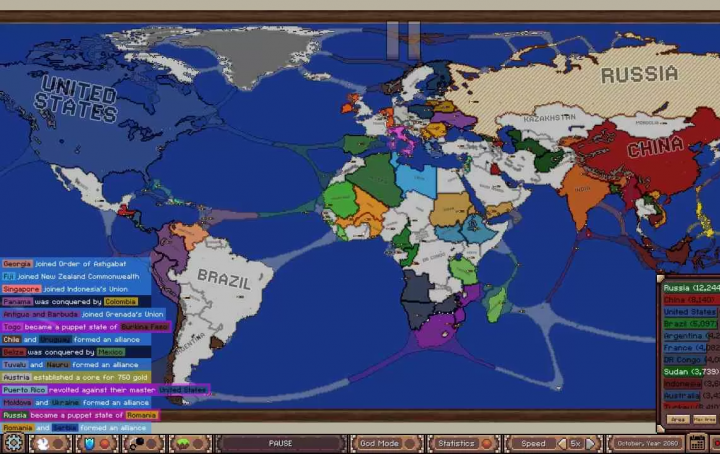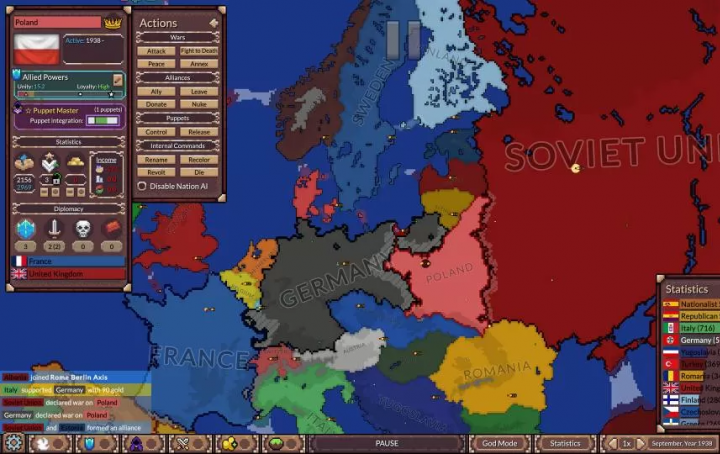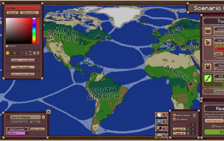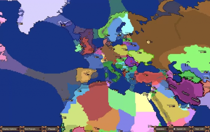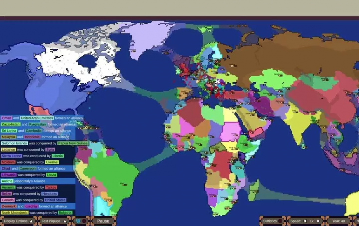 《冲突时代:世界大战模拟器》是支持多平台的沙盒策略模拟游戏,核心为 AI 驱动的列国对战。玩家可通过地图编辑器自定义战场与国家,观察联盟形成、叛乱爆发等动态地缘事件,无需微操即可见证历史改写。游戏包含预设场景与无限随机世界,新增时间线回放与战损统计功能,极简画风搭配流畅性能,让策略爱好者沉浸式体验千变万化的全球征服进程。