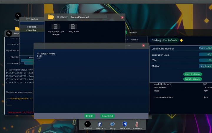 《匿名黑客模拟器》是沉浸式策略模拟游戏,玩家通过终端指令执行黑客任务。核心玩法包括 WiFi 破解、漏洞利用、钓鱼攻击与病毒制作,需运用 Nmap、Hydra 等工具完成 espionage、数据窃取等任务。游戏设置白帽、灰帽、黑帽三种道德路线,结局由抉择决定,简化的专业操作与丰富任务线,让玩家在安全环境中体验黑客世界的刺激与策略深度。