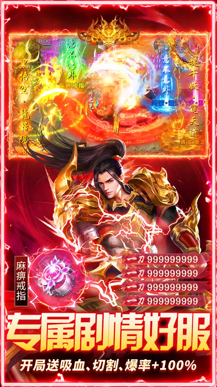 3.开荒福利:送对怪吸血+10%,怪物切割+1000,怪物爆率+100%
