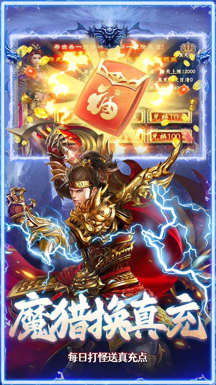 4.百万真充:魔猎兑换真充值点,免费兑换游戏道具、时装、称号