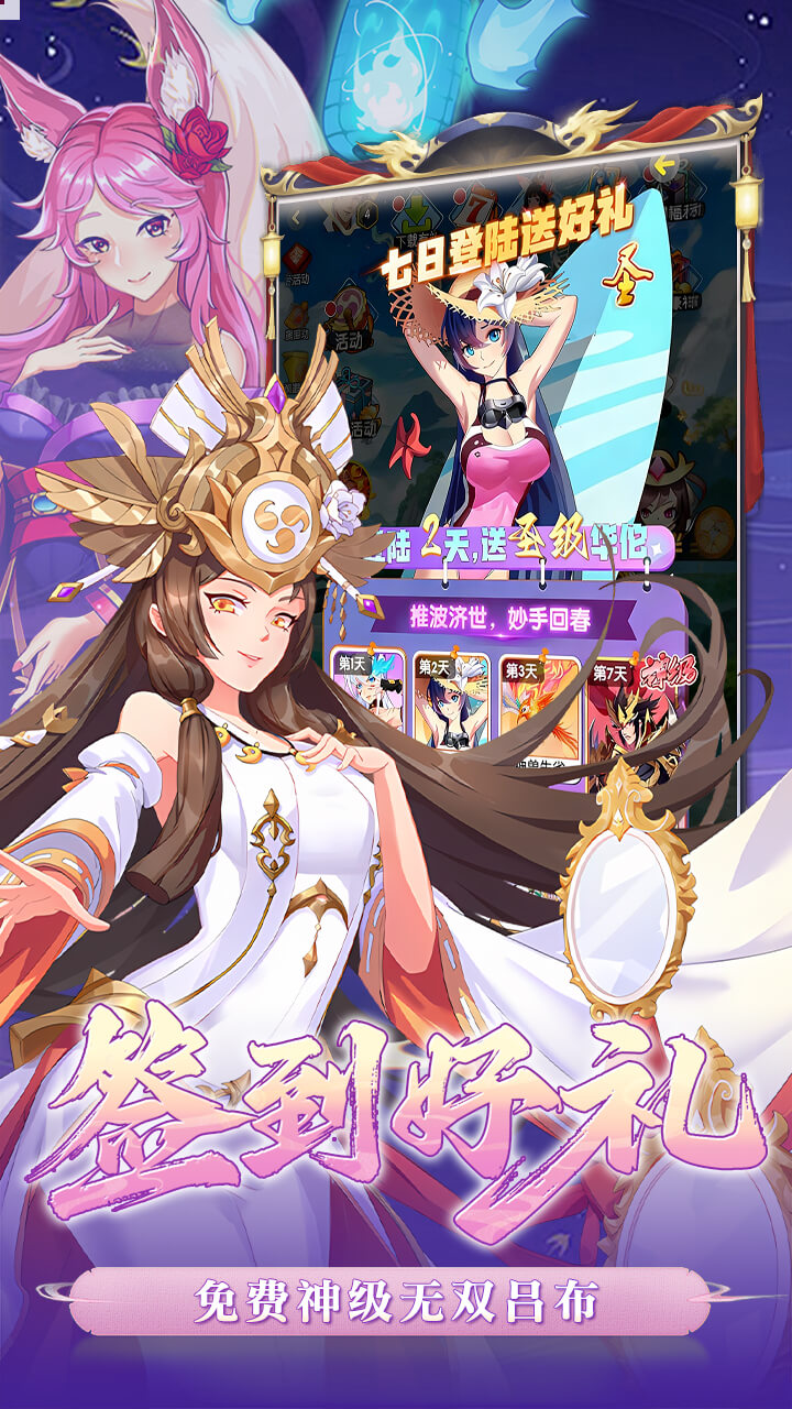 福利3:累计登录送神级天下无双吕布,升级免费送伙伴