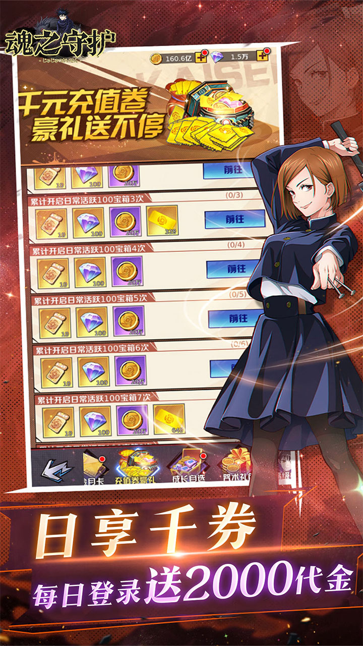 钻石*1000,御守碎片*100,咒力水晶*100