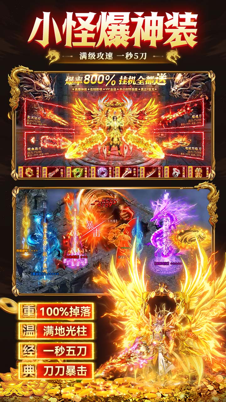 6.超高爆率:所有道具全靠打,全部地图无VIP限制,小怪也能爆神装