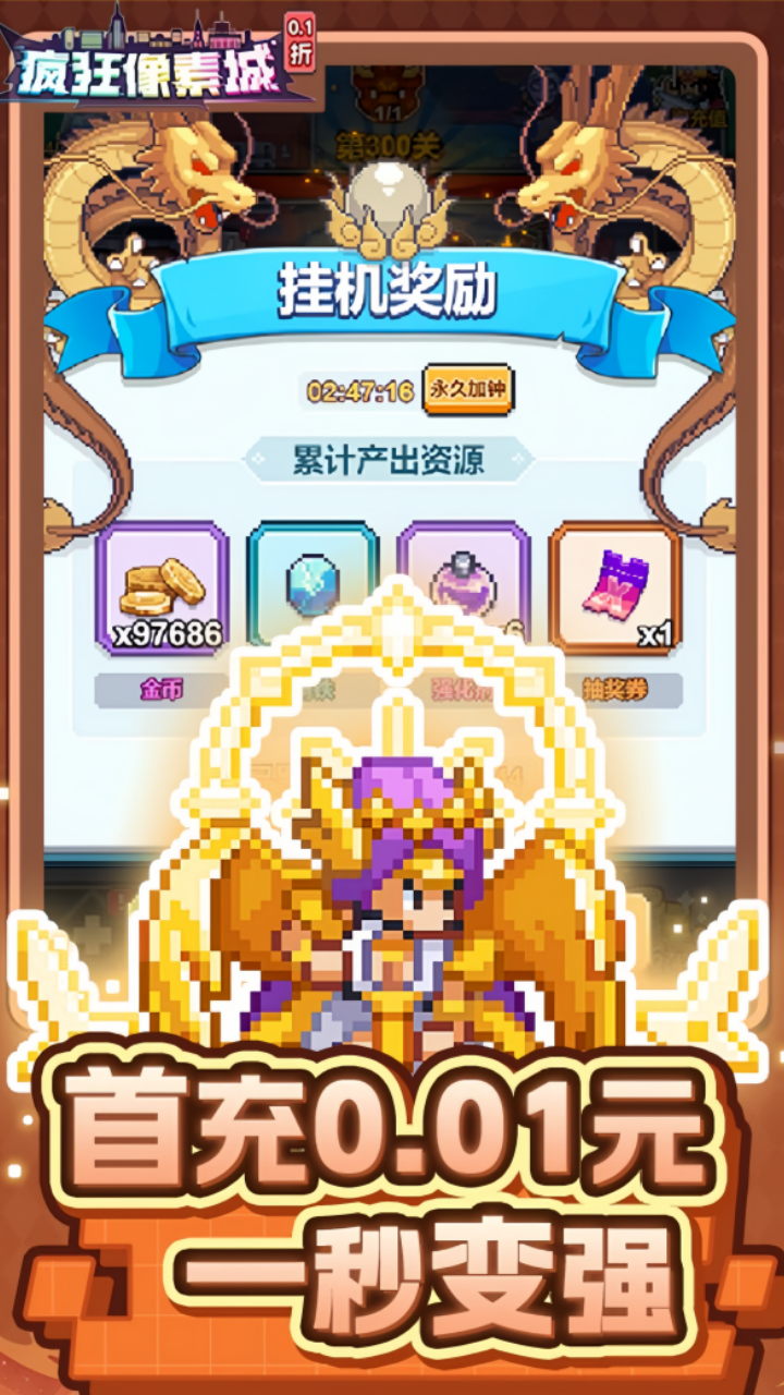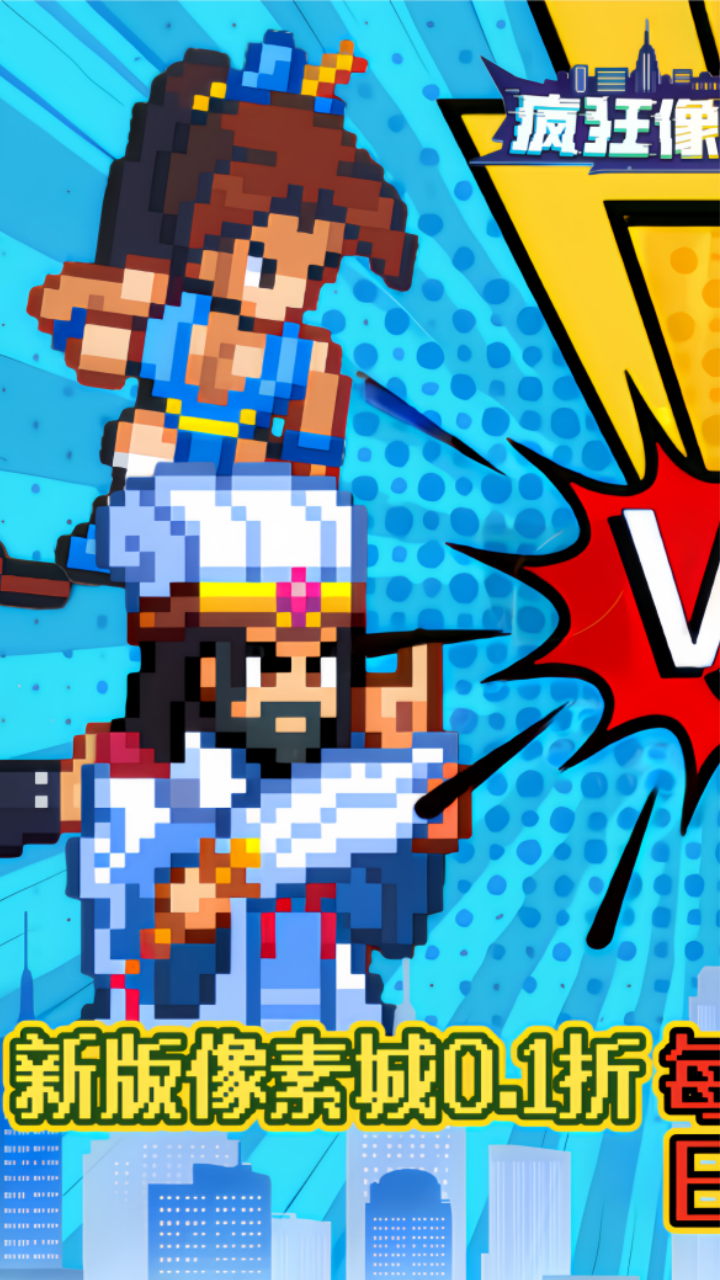 《疯狂像素城》是一款休闲像素风挂机手游。多种整容搭配,畅享不一样的操作体验,丰富英雄图鉴,回味童年经典人物,特色街机像素风,极致手感,不可错过的精彩,等您来玩,英雄们快集合起来战斗吧!