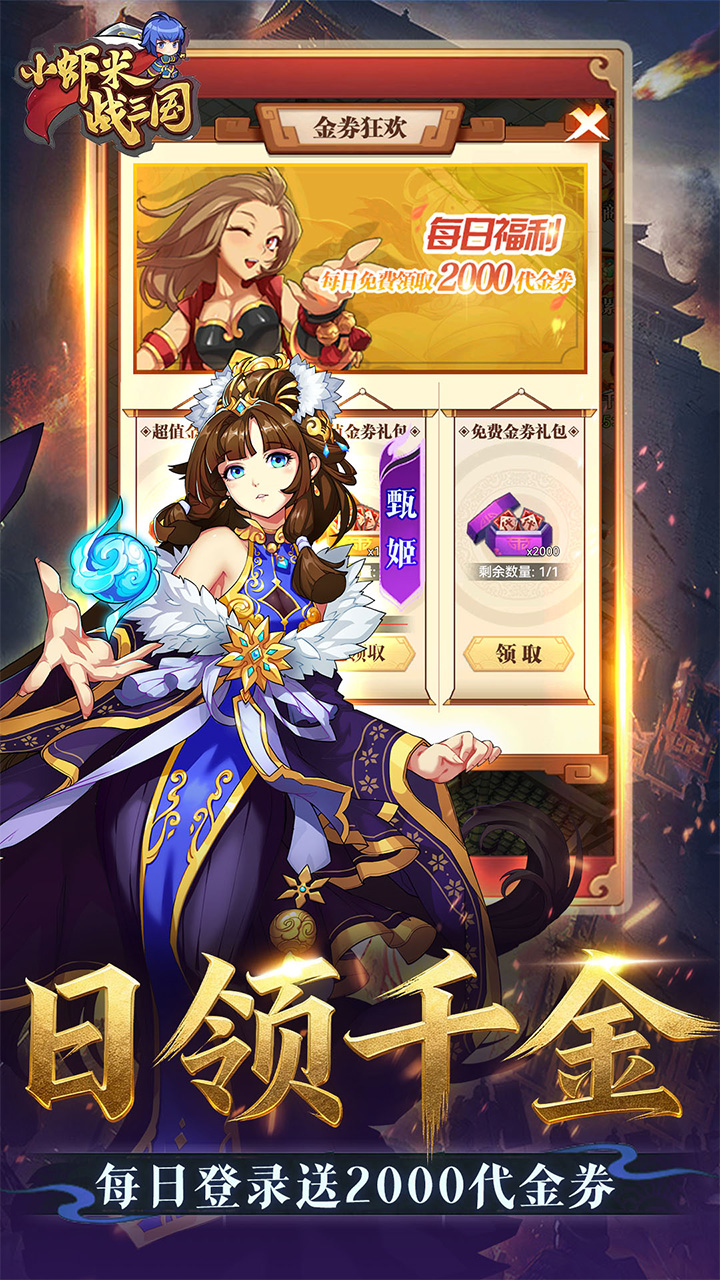1:每日上线登录送2000代金券,次日重置不叠加