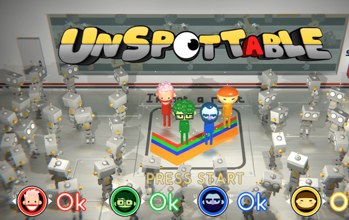 Unspottable是一款2-4 人竞争性派对游戏,由法国独立工作室 GrosChevaux开发,于 2021 年 1 月 21 日全球发布,登陆 PC、Switch、PS4 和 Xbox One 平台。游戏最大特色是:所有玩家角色与 AI 控制的机器人外观完全相同,胜负关键在于完美融入 AI 人群并找出隐藏的真人对手。