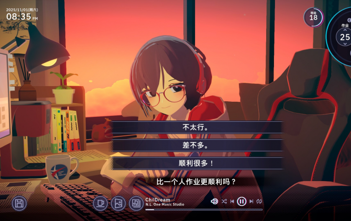 「放松时光:与你共享Lo-Fi故事」是一个与喜欢写故事的女孩聪音一起工作的有声小说游戏。