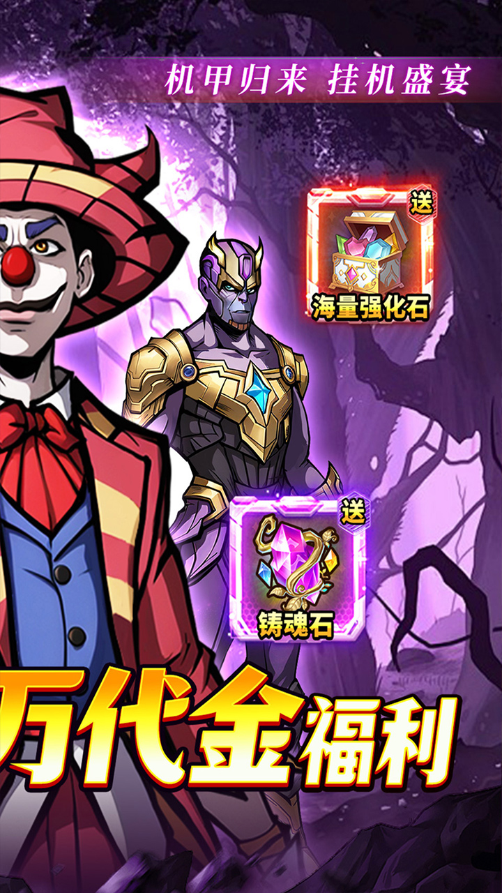 一款充满美漫风格的MMO挂机游戏,它以精彩的特效和丰富的玩法为核心,带你进入一个前所未有的机甲战斗世界。游戏内,充值仅需0.1折的超值优惠,让你充值648元仅需6.48元,同时享受代金券最高10倍膨胀的福利。创角即送豪华大礼包,包括铸魂石、魔力、宝石、金币和强化石等珍稀资源,助你快速成长,轻松称霸。在这里,你可以随时挂机升级,也可以挑战各种精彩副本,与好友组队并肩作战,共同探索机甲世界的无限可能。