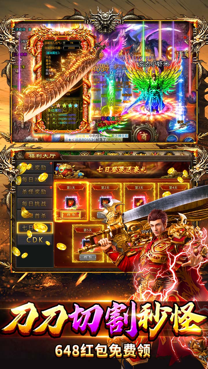 7.杀怪奖励:累计击杀小怪,挑战BOSS领海量元宝、红包、经验券