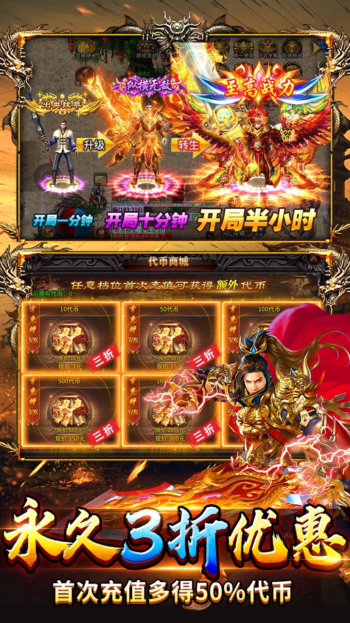 3.免费首充:免费首充送刀刀绿毒、“除魔真人“时装、百万绑定元宝、新人转生宝箱