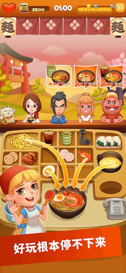 一次拥有,多重体验——融合《寿司大厨》《拉面大厨》《点心大厨》等超人气玩法,从一个游戏轻松穿梭于寿司吧、拉面屋、点心坊之间!