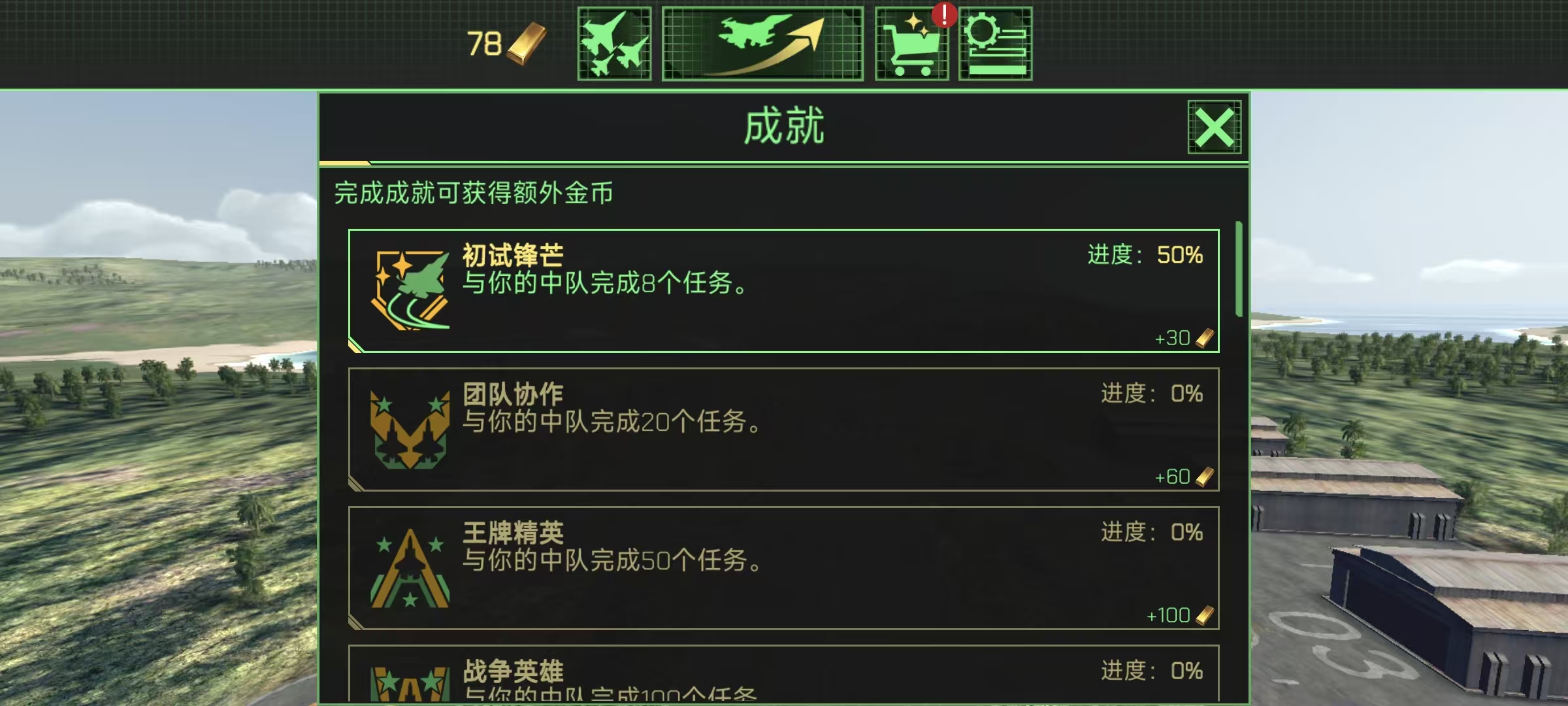 ● 指挥官模式:为游戏增添战略元素。除了驾驶战机,你还要负责部队的发展。扩建空军基地,管理资源,招募精英飞行员,确保你的特遣部队时刻保持战斗力。