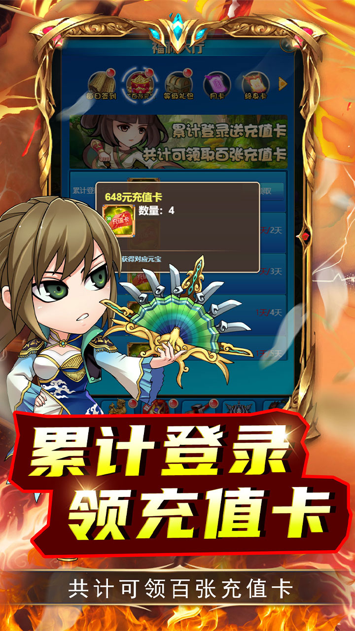 元宝*5w、挑战令*10、武将进阶丹*200、铜钱*100w