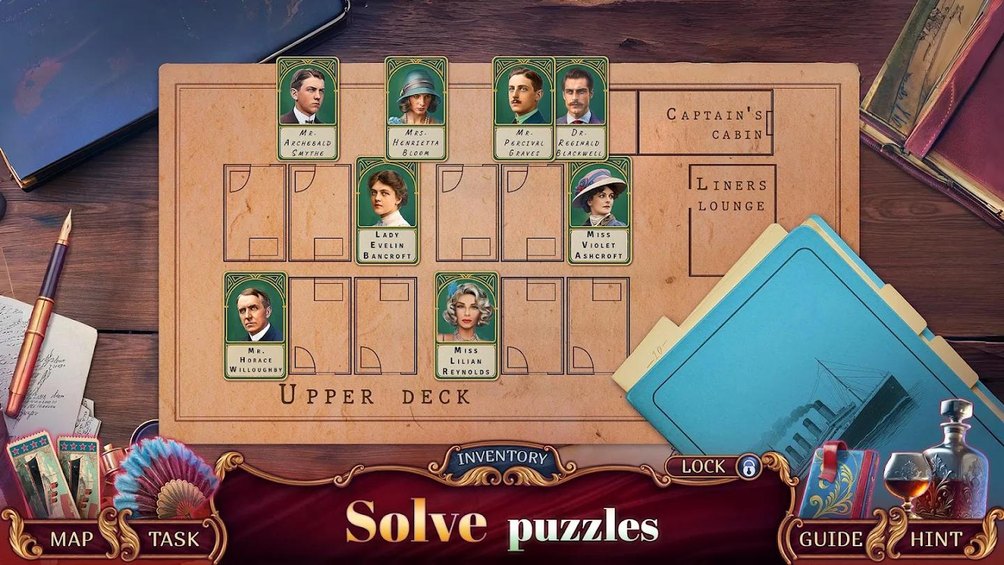 在豪华游轮上调查一桩犯罪案件,揭开黑暗秘密,并在解开引人入胜的谜题和迷你游戏的过程中测试你的技能,寻找隐藏的线索,揭开凶手的面纱。