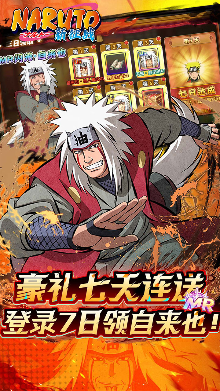 2、【7日豪礼】超值豪礼免费送,首日即赠自来也·仙人模式