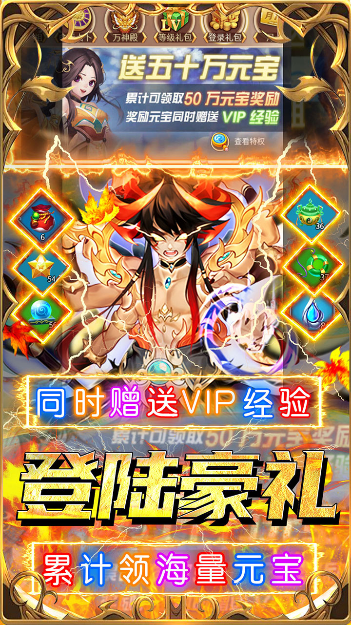 2,累计登录奖励海量元宝同时还赠送超多vip经验!