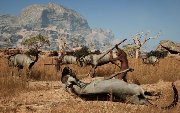 《原始生存 Primal Survival》是 Steam 平台史前题材硬核多人开放世界生存游戏,背景设定在 240 万年前的史前非洲,核心玩法是扮演能人 / 直立人,从零制作石器、搭建庇护所,对抗饥饿、口渴、疲劳与极端天气。狩猎史前巨兽,应对动态生态与高智能野兽,在广阔地图自由探索。多人联机组建原始部落,可互动交易、协作抵御自然与野兽威胁。