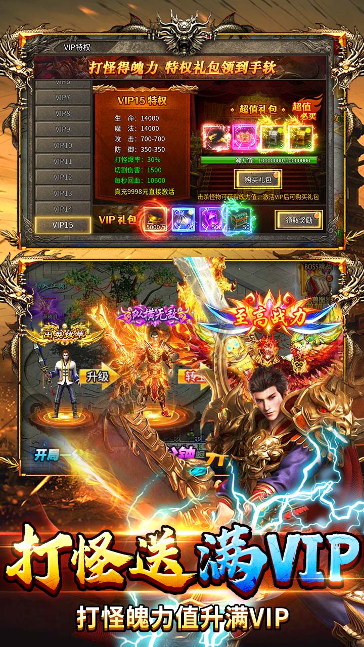 3.白嫖VIP:击杀怪物获取魄力值激活满级VIP