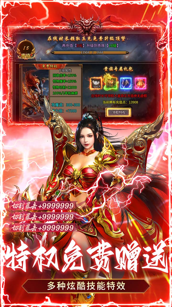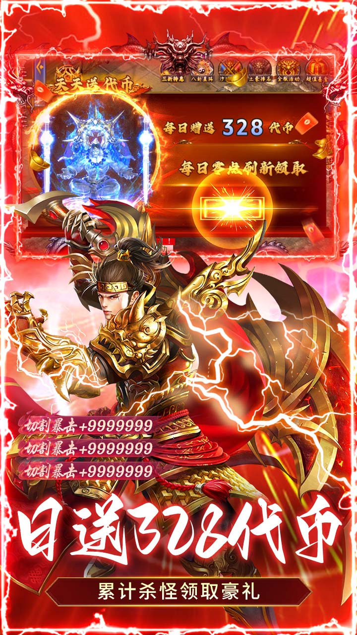莽荒传奇(天天328免费版)是一款冰雪中变题材的传奇游戏,内置三折充值系统,游戏特色是可召唤僵尸作为伙伴帮助角色抗怪,砍怪,僵尸升级后属性,形象都会大幅度改变,创角送自动回收/拾取和满级切割,满级小神魔,每日累计打怪还能大量材料元宝奖励,每日登录还送328代币无线循环,使用后直接免费领取顶赞奖励,开通终生特权后每天领200代币,传奇画质精美,福利满满;线上更有十种不同的活动供你获取资源;0氪也能变大佬。