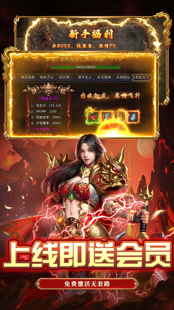 7.个人BOSS掉落极品神装。