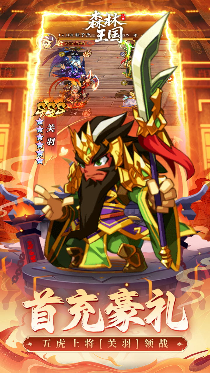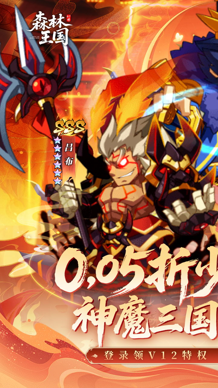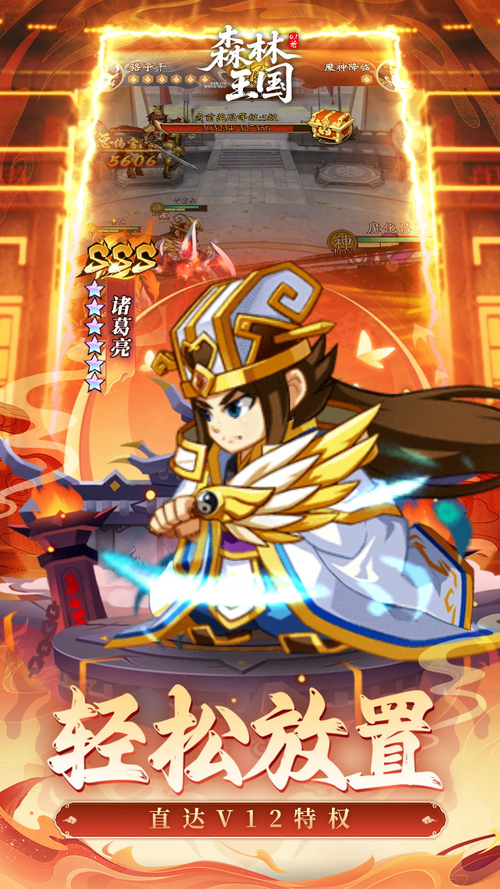 Q萌三国挂机卡牌《森林王国(0.05折千抽神魔无双)》全新版本正式来袭,登录即送特权V12,解锁超多功能。上线再领千抽名将令、千抽神魔令,抽卡嗨不停集齐三国名将,爽玩三国战场。首充解锁五虎上将关羽,佛挡杀佛神挡杀神。放置挂机,护肝养肾,主公快来三国世界厮杀!
